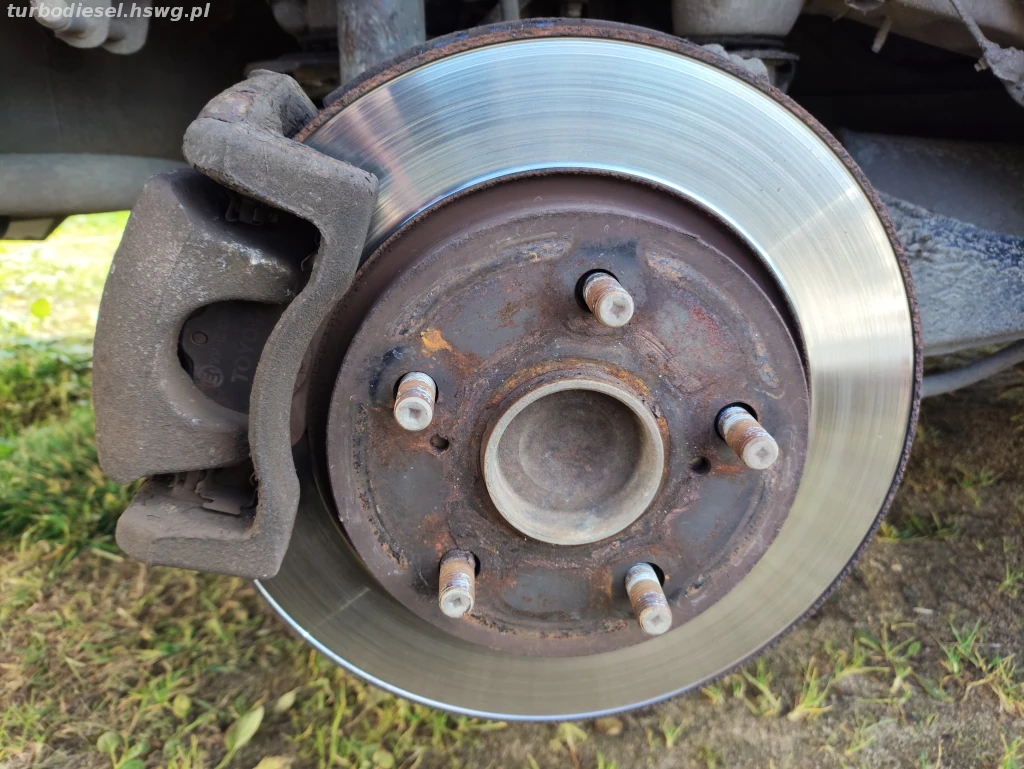 Jeśli chodzi o części, to każdy kupi tarcze i klocki według swoich preferencji. W mojej Toyocie Auris jest zastosowany system hamulcowy Bosch. Ja kupiłem tarcze TRW DF4830 średnica 270mm, grubość 10mm, 5 otworów na szpilki koła i 2 pomocnicze otwory gwintowane M8 do odspojenia tarczy od piasty. Jeśli chodzi o klocki hamulcowe, to wybrałem Brembo P 83 080. Taki zestaw kosztował mnie około 260zł, oczywiście za komplet na oba koła.